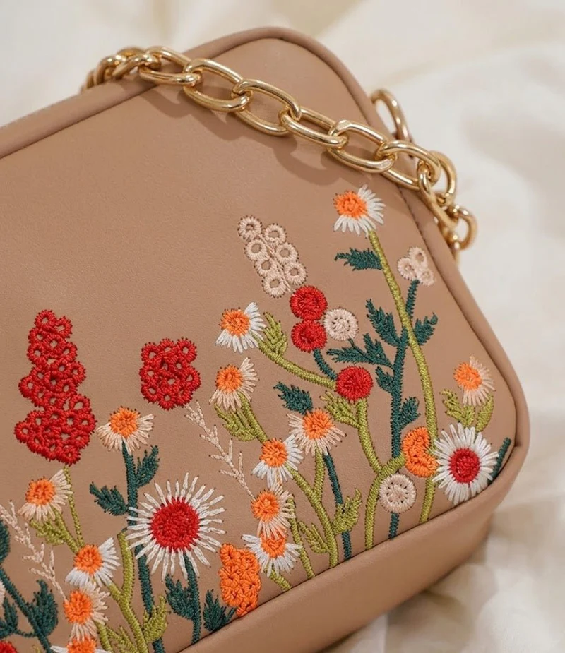 Floral Embroidered Chain Shoulder Bag for Women