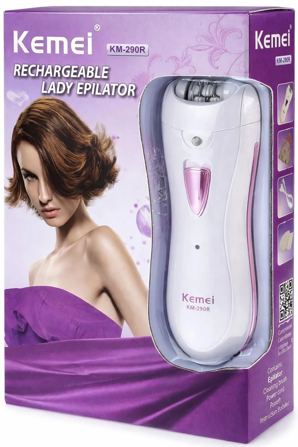 The Kemei Lady Epilator is a compact beauty tool specially made for women’s grooming needs. It features a powerful yet gentle motor that removes even the smallest hairs from the root, leaving your skin smooth and soft for longer periods. This 3-in-1 grooming device comes with multiple attachments for different beauty needs such as hair removal, trimming, and shaping. The ergonomic body design pro